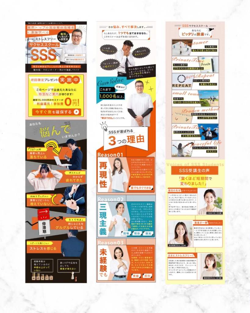 副業・転職・スキルアップを目指す方向けオンラインスクール「SSS(サクセススクール)」のランディングページデザインを担当しました。